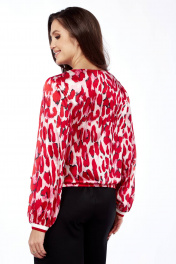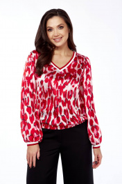 Блузка с V образным вырезом горловины и втачным рукавом. По низу блузки и рукава декоративные довязы.