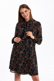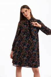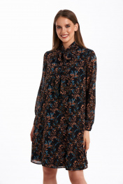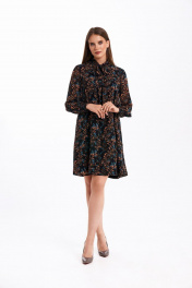 Элегантное шифоновое платье с воротником-стойкой и батистовой отделкой KaVaRi 1059 черный_принт