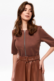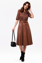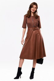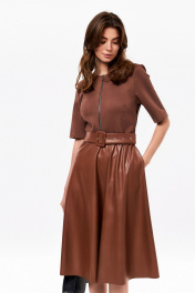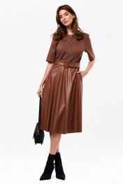Приталенное платье из трикотажа и экокожи с ремнём KaVaRi 1070.1 коричневый