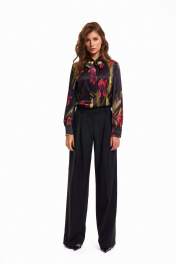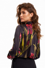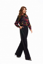 Блуза из атласного материала с бретелью и сборкой у рукава KaVaRi 4010 черный_цветы
