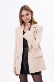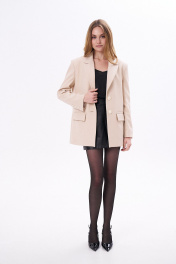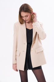 Базовый жакет прямого силуэта с классическим воротником и лацканами с застёжкой на две пуговицы. По переду прорезные карманы в рамку с клапанами. Рукава со шлицами и пуговицами.