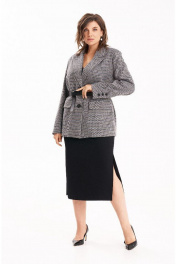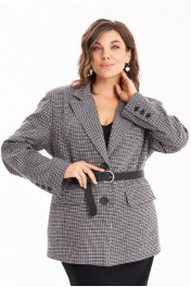 Базовый жакет прямого силуэта с классическим воротником и лацканами с застёжкой на две пуговицы. По переду прорезные карманы в рамку с клапанами. Рукава со шлицами и пуговицами. Ремень в комплект не входит._x000D_ Длина жакета - 74 см._x000D_ Длина рукава - 62 см._x000D_