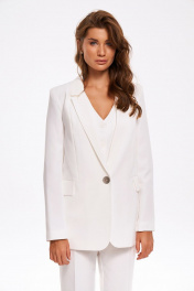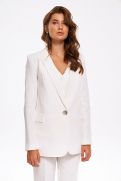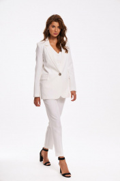 Шикарный 3-х предметный комплект состоящий из жакета, жилета и брюк. Универсальный женский жакет на подкладке прямого силуэта. Перед с центральной застежкой на одну пуговицу, с карманами и с клапанами в шве. Воротник стояче-отложной втачной с отворотом лацкана. Рукав двухшовный, втачной. Жилетка женская умеренного объема полуприлегающего силуэта. Перед с талиевыми вытачками и имитацией карманов с листочкой. Спинка с талиевыми вытачками. Жилетка на притачной подкладке. Застежка центральная, на прорезные петли и пуговицы. Длина жилетки до уровня линии бедер. Брюки базовые со стрелками. Изделие имеет комфортную средней посадку. Брюки на притачном поясе со шлёвками. Спереди боковые функциональные карманы, сзади имитация прорезных карманов с листочкой. Длина жакета - 73 см. Длина рукава – 63 см Длина желета -68 см Длина брюк по боковому шву с поясом - 98см