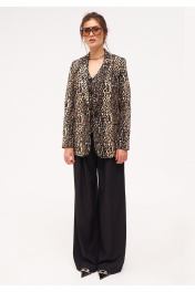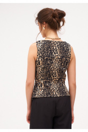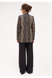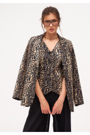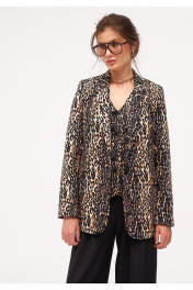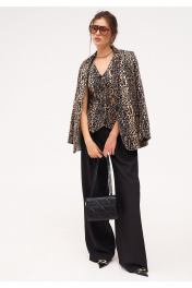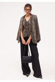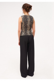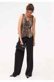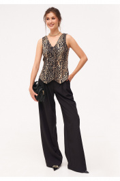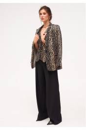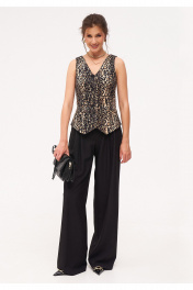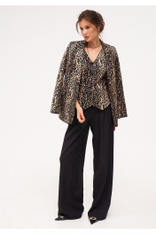 Демисезонный женский комплект из жакета, жилета и палаццо из текстиля KaVaRi 8041 леопардовый_черный