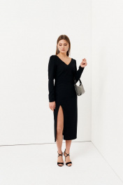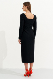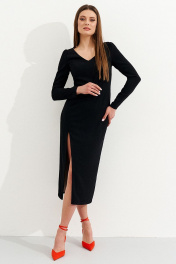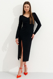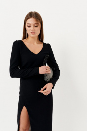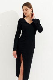 Черное платье-костюм из текстиля с разрезом и приталенным силуэтом Ketty К-03280