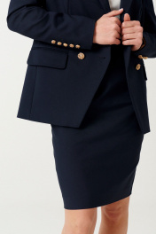 Юбка полуприлегающего силуэта выполнена из натурального полотна. Характеристики: Юбка полуприлегающего силуэта, застежка на потайную молнию в среднем шве спинки. Средний шов спинки заканчивается шлицей. По переднему и заднему полотнищам талиевые вытачки. Длина изделия до колена.