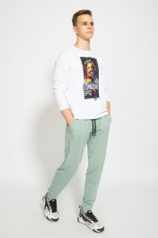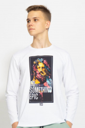 Демисезонный белый лонгслив из хлопка и трикотажа Kivviwear 1009.07