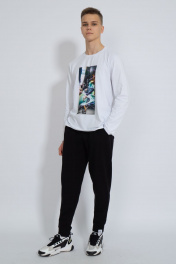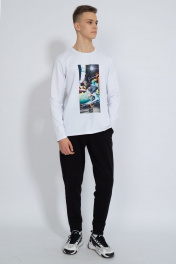 Демисезонный белый лонгслив из хлопка и трикотажа Kivviwear 1009.16