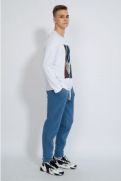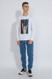 Демисезонный белый лонгслив из хлопка и трикотажа Kivviwear 1009.18