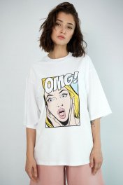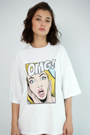 Джемпер свободного кроя. Удлиненный рукав, c завышенной горловиной. Ткань кулирная гладь , качество Пенье, плотность 200 г.м2 - Только деликатная стирка 30 градусов - Не использовать отбеливатели - Изделие вывернуть наизнанку - Допускается осветление принта после первой стирки на 10%