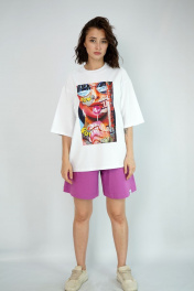 Джемпер свободного кроя. Удлиненный рукав, c завышенной горловиной. Ткань кулирная гладь , качество Пенье, плотность 200 г.м2 - Только деликатная стирка 30 градусов - Не использовать отбеливатели - Изделие вывернуть наизнанку - Допускается осветление принта после первой стирки на 10%