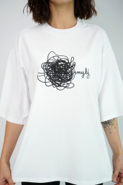 Джемпер свободного кроя. Удлиненный рукав, c завышенной горловиной. Ткань кулирная гладь , качество Пенье, плотность 200 г.м2 - Только деликатная стирка 30 градусов - Не использовать отбеливатели - Изделие вывернуть наизнанку - Допускается осветление принта после первой стирки на 10%