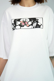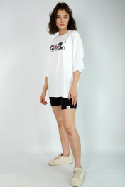 Джемпер свободного кроя. Удлиненный рукав, c завышенной горловиной. Ткань кулирная гладь , качество Пенье, плотность 200 г.м2 - Только деликатная стирка 30 градусов - Не использовать отбеливатели - Изделие вывернуть наизнанку - Допускается осветление принта после первой стирки на 10%
