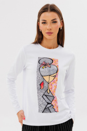 Белый классический лонгслив из хлопка с принтом Kivviwear 4061.60