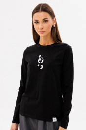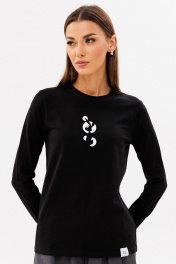 Черный лонгслив из хлопка с принтом, стильная классика Kivviwear 4061.63