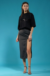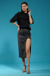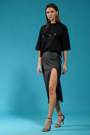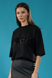 Майка удлиненная с пайетками из трикотажа хлопка Kivviwear 4143.05