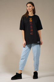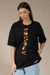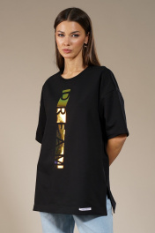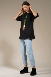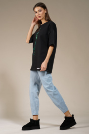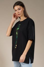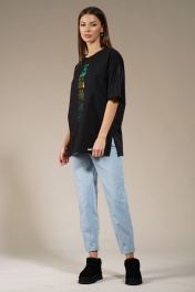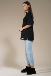 Черный удлиненный джемпер с боковыми разрезами, комфортный Kivviwear 4147.01