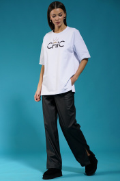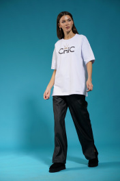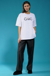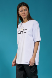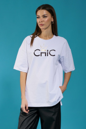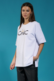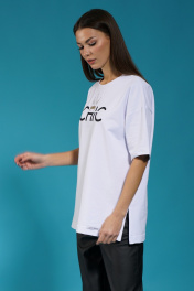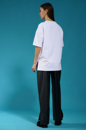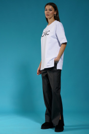 Белый удлиненный трикотажный джемпер с разрезами Kivviwear 4147.06