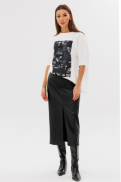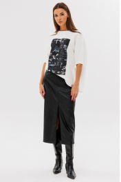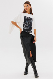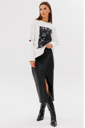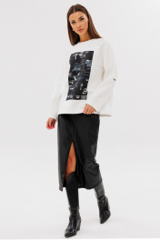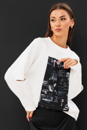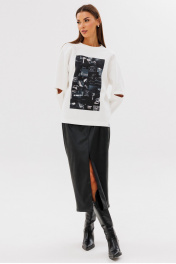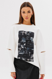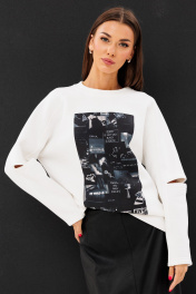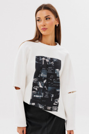 Молочный свитшот свободного силуэта с разрезами Kivviwear 4223.05