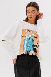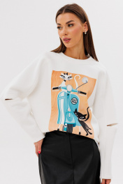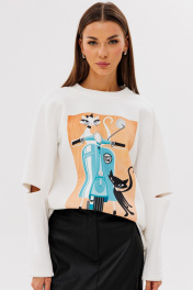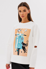 Молочный свитшот с разрезами из трикотажа и хлопка Kivviwear 4223.06