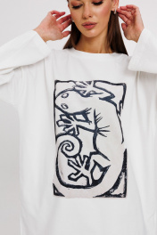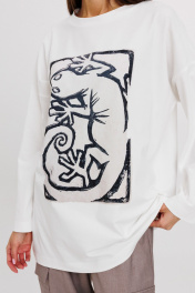 Этот джемпер-футболка с удлинённым, приспущенным рукавом сочетает в себе непринуждённый стиль и утончённый вкус. Яркие оригинальные принты добавляют выразительности и акцента, превращая его в центральный элемент любого наряда. Изготовленный из кулирной глади премиального качества Пенье, он обеспечивает непревзойдённый комфорт и долговечность. Идеально подходит как для классических, так и для современных образов, этот джемпер-футболка подчеркнёт вашу индивидуальность и безупречный стиль, добавив нотку свежести и яркости в ваш гардероб. Только деликатная стирка 30 градусов, не использовать отбеливатели, изделие вывернуть наизнанку.