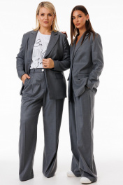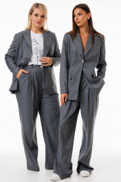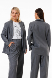 Жакет серый удлинённый с воротником ласточка деловой стиль Kivviwear 4273.01