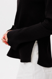 Джемпер с цельнокроеным воротником и декоративными разрезами — смелый акцент в вашем гардеробе, где авангардный дизайн встречается с премиальным комфортом. Модель с разрезами на рукавах и по бокам создает динамичный объем, добавляя образу дерзости и движения. Цельнокроеный воротник плавно переходит в линию плеч, подчеркивая минималистичную эстетику и безупречный крой. Премиальный хлопок с эластаном обеспечивает мягкость, эластичность и идеальную посадку, сохраняя форму даже при активной носке. Универсальный джемпер легко сочетается с кожаными брюками для уличного стиля, плиссированными юбками для контраста или базовыми джинсами для повседневного образа. Почему этот джемпер? Эксклюзивность: асимметричные разрезы и бесшовный воротник выделяют модель из массы. Комфорт: дышащая ткань адаптируется к движениям, не стесняя тело. Стиль: баланс между грубым шиком и лаконичностью. Добавьте эту модель в коллекцию, чтобы создавать образы, где каждая деталь говорит о вашем смелом вкусе и любви к экспериментам. Только деликатная стирка 30 градусов, не использовать отбеливатели, изделие вывернуть наизнанку. Параметры модели на фото: 1. Рост 175, ОБ 89, ОТ 60, ОГ 80. Изделие на фото 42 XS