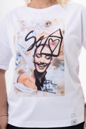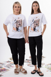 Женская футболка с эксклюзивными арт-принтами | Коллаборация с художницей Ольгой Южик Instagram:@yuzhikolga88 Уникальная футболка воплощающая творческий дух коллаборации с талантливой художницей Ольгой Южик. На футболках нанесены эксклюзивные принты, созданные по мотивам её картин, которые можно увидеть в Instagram @yuzhikolga88. Каждая линия и оттенок отражают авторский стиль художницы, сочетающий абстракцию, эмоциональность и гармонию природы. Дизайн, вдохновленный искусством: • Спущенный рукав и прилегающий крой создают непринужденный силуэт в стиле, подчеркивающий комфорт и современную эстетику. • Эксклюзивные принты по мотивам картин — это деталь, которая превращает футболку в арт-объект. • Принты нанесены методом качественной цифровой печати. Премиум-качество и универсальность: Футболка изготовлена из мягкого хлопка с добавлением эластана, который обеспечивает идеальную посадку, ткань прекрасно дышит и обеспечивает легкость. Нейтральная белая база позволяет принтам оставаться главным акцентом, сочетая футболку с джинсами, юбками, пиджаками или oversize-кардиганами. Дополните свой гардероб футболкой, которая говорит за вас. Это больше, чем мода — это диалог с искусством, где ваше тело становится холстом для авторских идей @yuzhikolga88. Параметры моделей на фото: 1. Рост 175, ОБ 115, ОТ 78, ОГ 96. Изделие на фото 52 XXL 2. Рост 175, ОБ 89, ОТ 60, ОГ 80. Изделие на фото 42 XS" Рекомендуется только деликатная стирка 30 градусов, не использовать отбеливатели, изделие вывернуть наизнанку