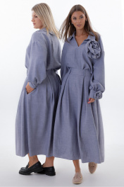"Эта удлиненная юбка-трапеция — воплощение грации и изысканности. Ее структура, будто сотканная из времени и традиций, создаёт ощущение лёгкости и свободы. Боковые карманы, скрытые в плавных линиях, несут в себе тайну и практичность, готовые хранить мелочи жизни. Встречные складки добавлют в каждый шаг нотку загадочности и элегантности. Юбка-трапеция: чарующий союз классики и современности. Параметры моделей на фото: 1. Рост 175, ОБ 115, ОТ 78, ОГ 96. Изделие на фото 50XL-52 XXL 2. Рост 175, ОБ 89, ОТ 60, ОГ 80. Изделие на фото 42 XS-44 S"