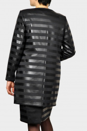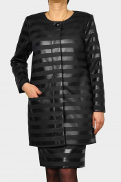 КАРДИГАН женский из трикотажной ткани с нанесением кожаной полоски шириной 2см.С карманами,по груди вытачки,застежка пуговица и потайная планка с пуговицами.Кардиган на подкладке. Хорошо сочетается с юбкой м-262/1 нашего бренда.По спинке центральный шов.Бережная стирка при 30градусах. Размеры-50-52-54-56-58-60. Обьем бюста 100-104-108-112-116-120. Обьем бедер 108-112-116-120-124-128. Длина рукава от горловины 72-72-72-74-74-74. Длина изделия по спинке 83 см во всех размерах.