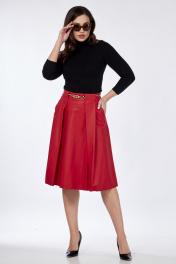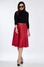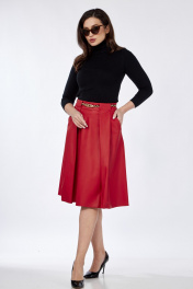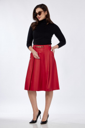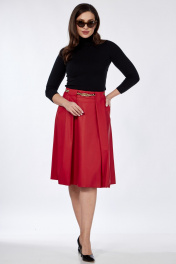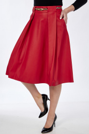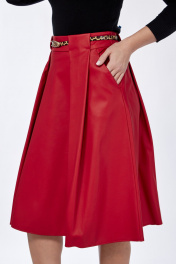 Юбка из эко-кожи со складками и карманами Klever 225 алый_матовый