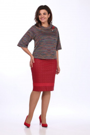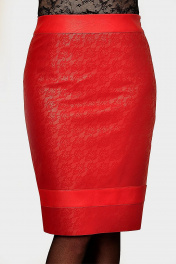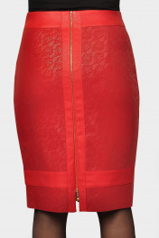 Юбка из эко-кожи и кружева с металлизированной молнией Klever 259 красный