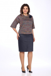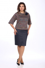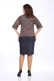 Юбка из экокожи и блуза с рукавом из трикотажа Klever 298/394 синий+мультиколор