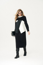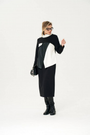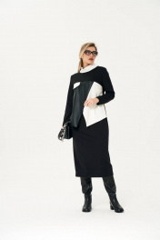 Трикотажное платье с вставками из экокожи Koketka i K 1110 черный+белый