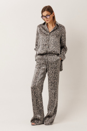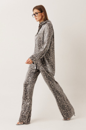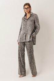 Блузка из вискозной ткани: – прямой силуэт – трендовый леопардовый принт – застёжка по переду на пуговицы – длинный рукав с манжетой и застёжкой на пуговицу