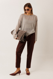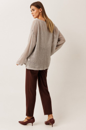 Джемпер двухслойный: – прямой силуэт – первый слой выполнен из мягкого ворсистого с лёгкой полупрозрачностью трикотажа, очень приятного на ощупь – рукава длинные, расширенные – второй слой — топ из трикотажа на бретелях – спинка лаконичная