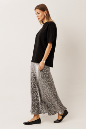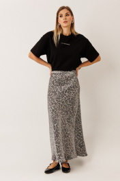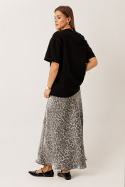 Юбка из атласа с вискозой: – анималистичный принт – прилегающий силуэт с расширением к низу – застёжка сбоку на потайную тесьму-молнию – пояс на резинке – ткань плотная, «тяжёлая»