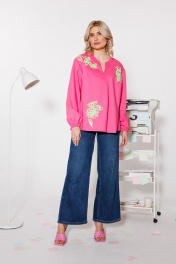 Блуза из хлопка с вышивкой и вырезом В-образной формы KOKOdea 4.26_розовый