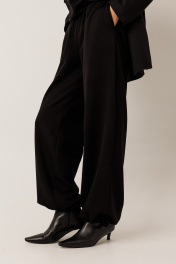 Брюки из трикотажа «трёхнитка»: – широкий силуэт – пояс на резинке – по переду - карманы с наклонным входом – по низу расположены фиксаторы: при желании можно создать трендовый силуэт «аладдин»