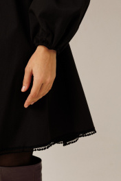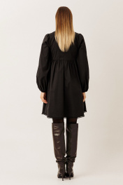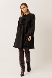 Платье: – романтичный свободный силуэт – по переду — завязки на бантики – юбка со сборкой – рукав снизу на резинке – застёжка на потайную молнию по спинке – по низу — тонкое нежное кружево