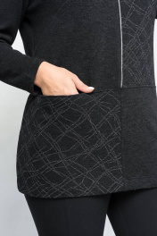 Прямого силуэта со спущеной линией плеча и длинным рукавом. Перед с нагрудными вытачками. Выполнен в комбинации трикотажных полотен. По переду- кант и карман в горизонтальном шве.