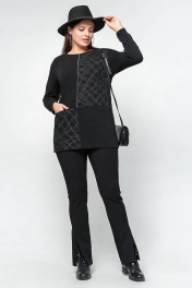 Демисезонный прямой джемпер с спущенными плечами и кантами La rouge 3176 серебро-(черный)