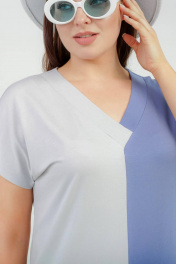 Женская летняя футболка свободного силуэта с коротким цельнокроеным рукавом. Трикотажная нарядная женская блузка с V- образным вырезом горловины с планками. Базовая женская кофта оверсайз выполнена в комбинации однотонов трикотажной вискозы, комфортна в носке и не стесняет свободу движений. Рост 164.