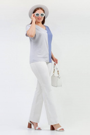 Джемпер приталенный из сетки с воротником-стойкой La rouge 3270 серый-(голубой)