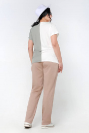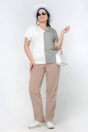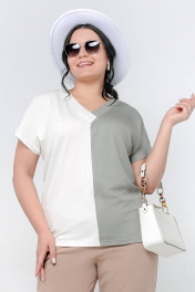 Летний свободный джемпер из вискозы с V-образным вырезом La rouge 3270 хаки-(молоко)