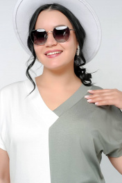 Свободного силуэта с коротким цельнокроеным рукавом и V- образным вырезом горловины с планками. Выполнен в комбинации однотонов вискозы.