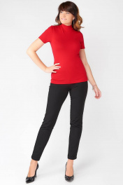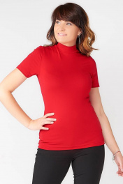 Джемпер классический прилегающего силуэта с коротким рукавом. Воротник-стойка. Выполнен из однотонной вискозы.