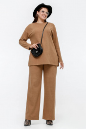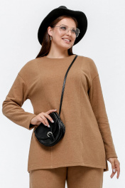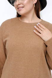 Свободный джемпер из плотного трикотажа с рельефами и разрезами La rouge 3326 кэмел