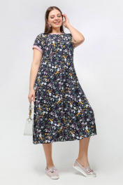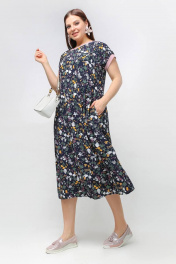 Платье трапециевидное с мелким рисунком и воланами La rouge 5422 синий-набивной
