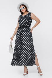 Платье трапециевидного силуэта из штапеля с разрезом La rouge 5453 синий-(горошек)